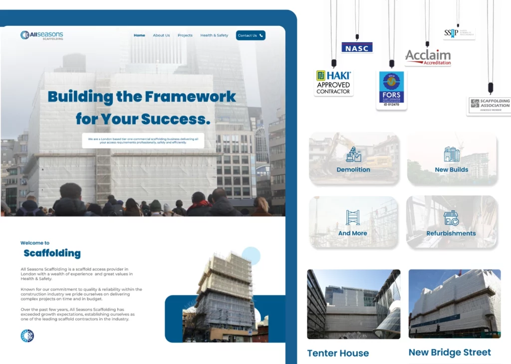All Seasons Scaffolding is a construction services website created to clearly communicate scaffolding solutions straightforwardly and professionally. The client wanted a digital presence that explains services without complexity, supports customer understanding, and reflects the reliability of their on-ground work.